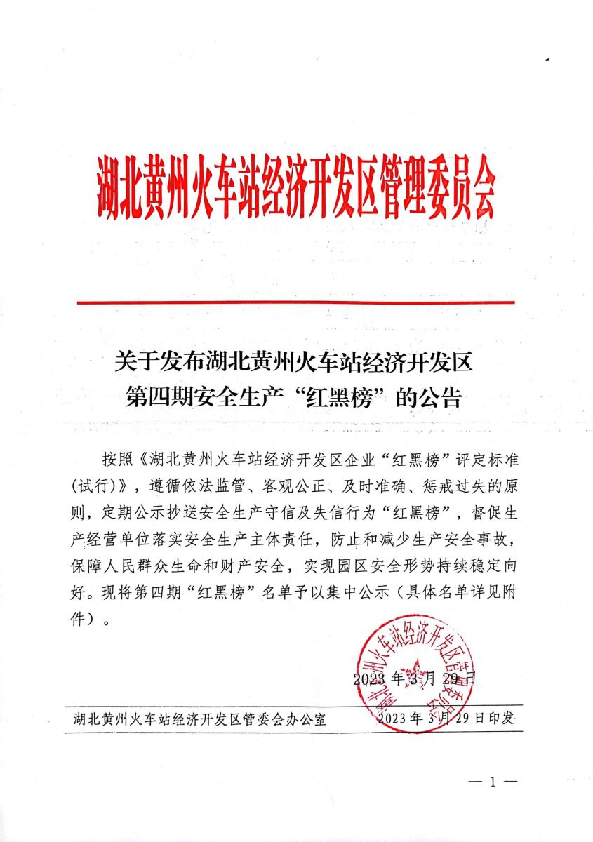 為督促生產(chǎn)經(jīng)營單位落實(shí)安全生產(chǎn)主題責(zé)任,防止和減少生產(chǎn)安全事故,保障人民群眾生命和財(cái)產(chǎn)安全,實(shí)現(xiàn)園區(qū)安全形勢持續(xù)穩(wěn)定向好。湖北黃州火車站經(jīng)濟(jì)開發(fā)區(qū)管理委員會,遵循依法監(jiān)督、客觀公正、及時(shí)準(zhǔn)確、懲戒過失的原則,定期公示抄送安全生產(chǎn)守信及失信行為“紅黑榜”。湖北微控榮幸登上紅榜名單。