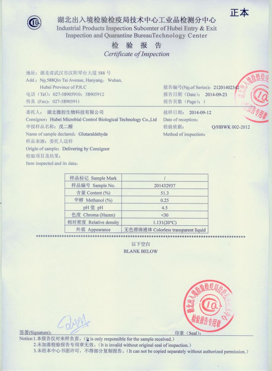 活性,戊二醛(w/w)%: 50.0-51.5 (25.0-26.0)